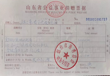The company cares for the people in the disaster area, and donates cash and materials to the disaster area and the epidemic area through the charity General Association, to demonstrate the practical action of corporate citizenship of social responsibility.